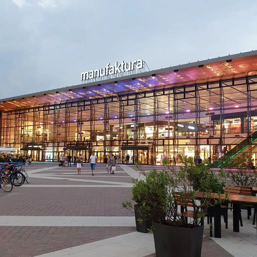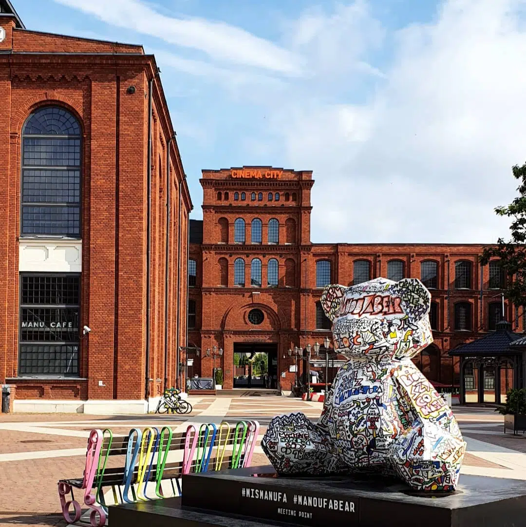 Na terenie dawnej fabryki Izraela Poznańskiego, w 2006 powstało olbrzymie (27 ha) centrum handlowo – usługowe Manufaktura. Przebudowa uwzględniła zachowanie pofabrycznych budynków z czerwonej cegły, co czyni z tego miejsca wyjątkową przestrzeń i klimat. W Manufakturze znajdziecie liczne restauracje, galerię handlową, Muzeum Sztuki, Muzeum Historii Miasta Łodzi, kino (Cinema City) a także klimatyczny hotel Vienna House Andels Łódź, w którym nocowałam w 2014 roku. Wieczorem Manufaktura zapełnia się tłumami – robi się głośno i tłoczno. O poranku jest zdecydowanie spokojniej.
