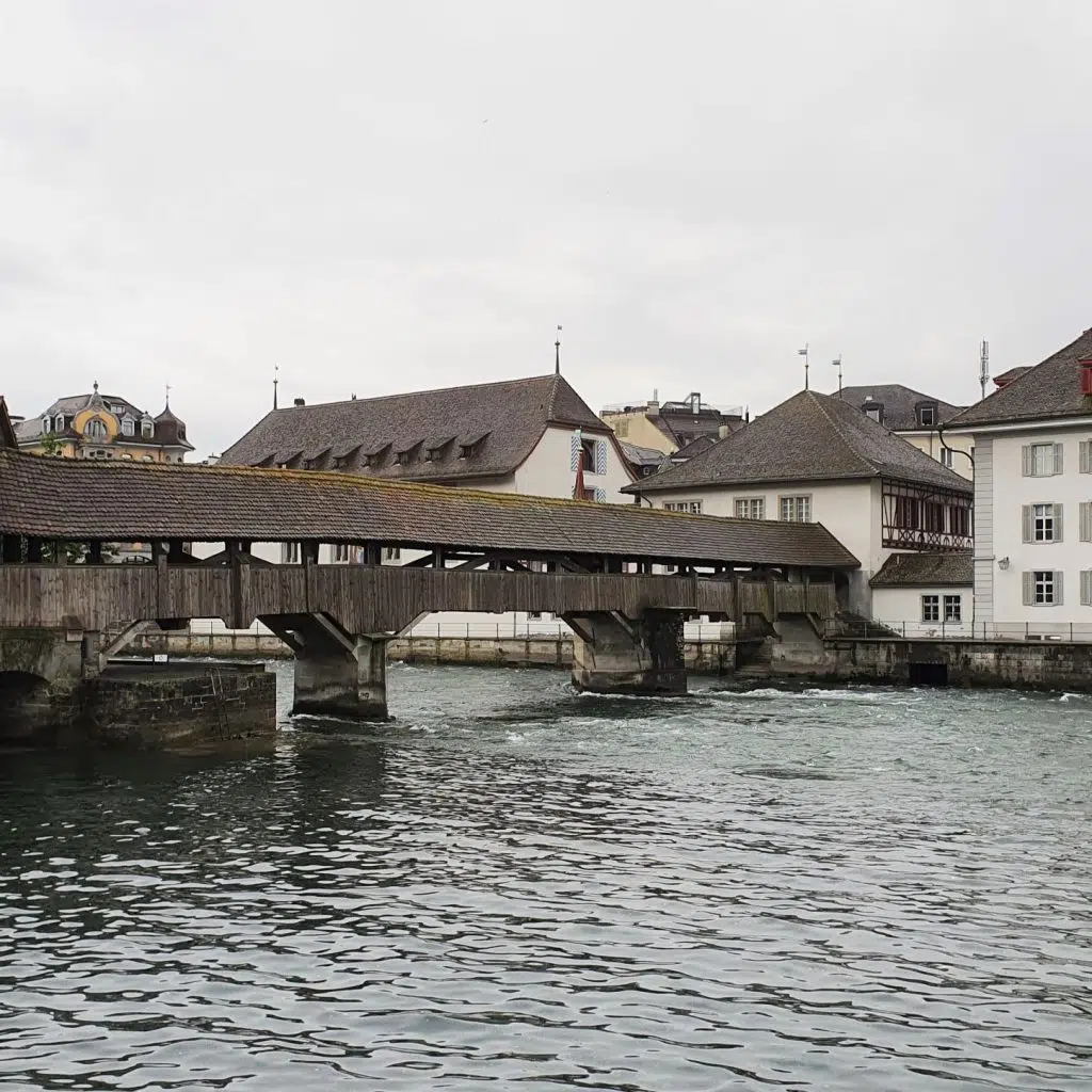 Wracając do hotelu minęłyśmy Spreuerbrücke czyli „Most Młyński” z 1408 roku. To drugi po Moście przy kaplicy drewniany most Lucerny. Ten również pod sklepieniem zdobiony jest obrazami.