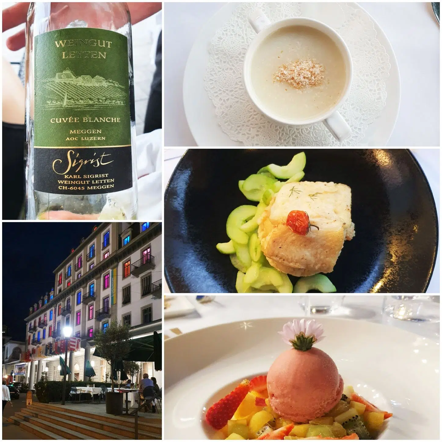 Po dosłownym wrzuceniu walizek do pokoi w klimatycznym Hotelu Waldstätterhof Swiss Quality (kilka kroków od stacji kolejowej) pędziłyśmy już na kolację. Czekała nas uczta w restauracji Pavilion w Hotelu Schweizerhof Lucerne mieszącym się przy promenadzie z widokiem na Jezioro Czterech Kantonów. Przygotowano dla nas smaczną kolację i pierwszy raz miałam okazję napić się wina z lokalnych upraw w okolicach Lucerny.