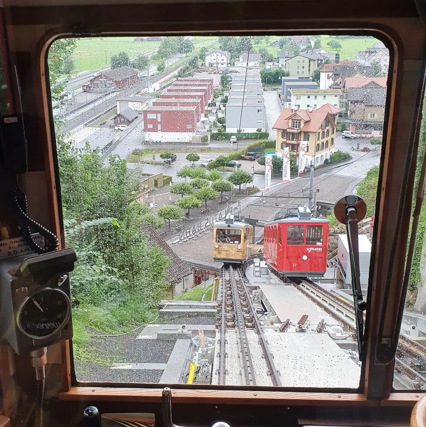 Przed południem ruszyłyśmy pociągiem z Lucerny do Alpnachstad. Stąd rusza kolejka zębata Pilatusbahn na masyw górski Pilatus Kulm.