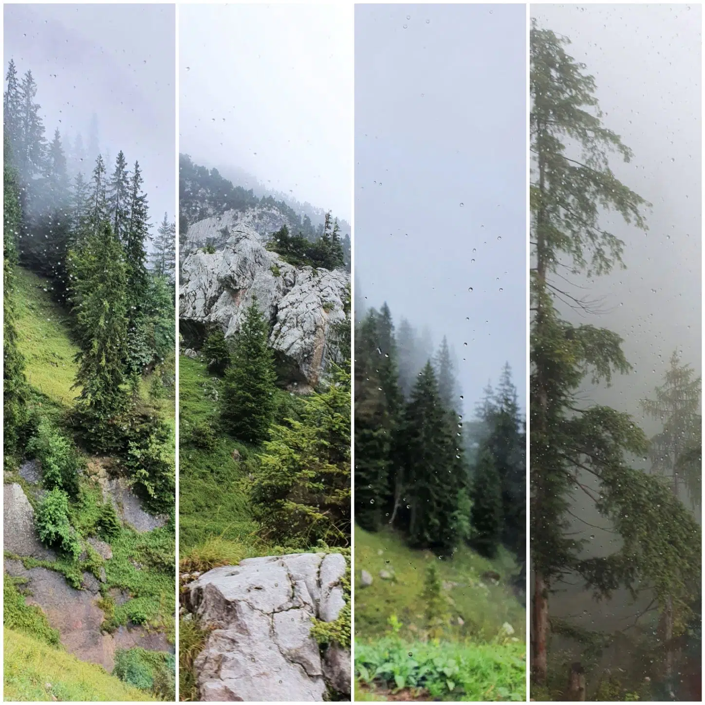 Jesienna, deszczowa pogoda nie pozwalała na podziwianie widoków z okna kolejki. Na górze czekała na nas już tylko biała mgła za oknem.