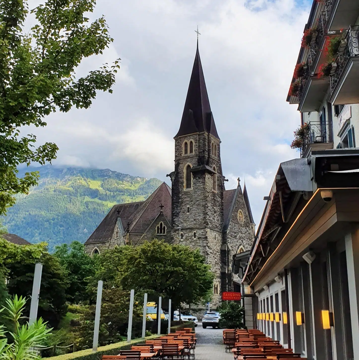 Na smaczną kolację i lokalne wino wjechałyśmy działającą od ponad 100 lat kolejką terenowo-linową do ulokowanej na wzgórzu restauracji Harder Kulm. Z jej tarasu widokowego na wysokości 1322 mnpm rozciąga się widok na Interlaken, jeziora oraz okoliczne szczyty. Polecam wybrać się na górę – wjazd zajmuje jedyne 10 minut.
