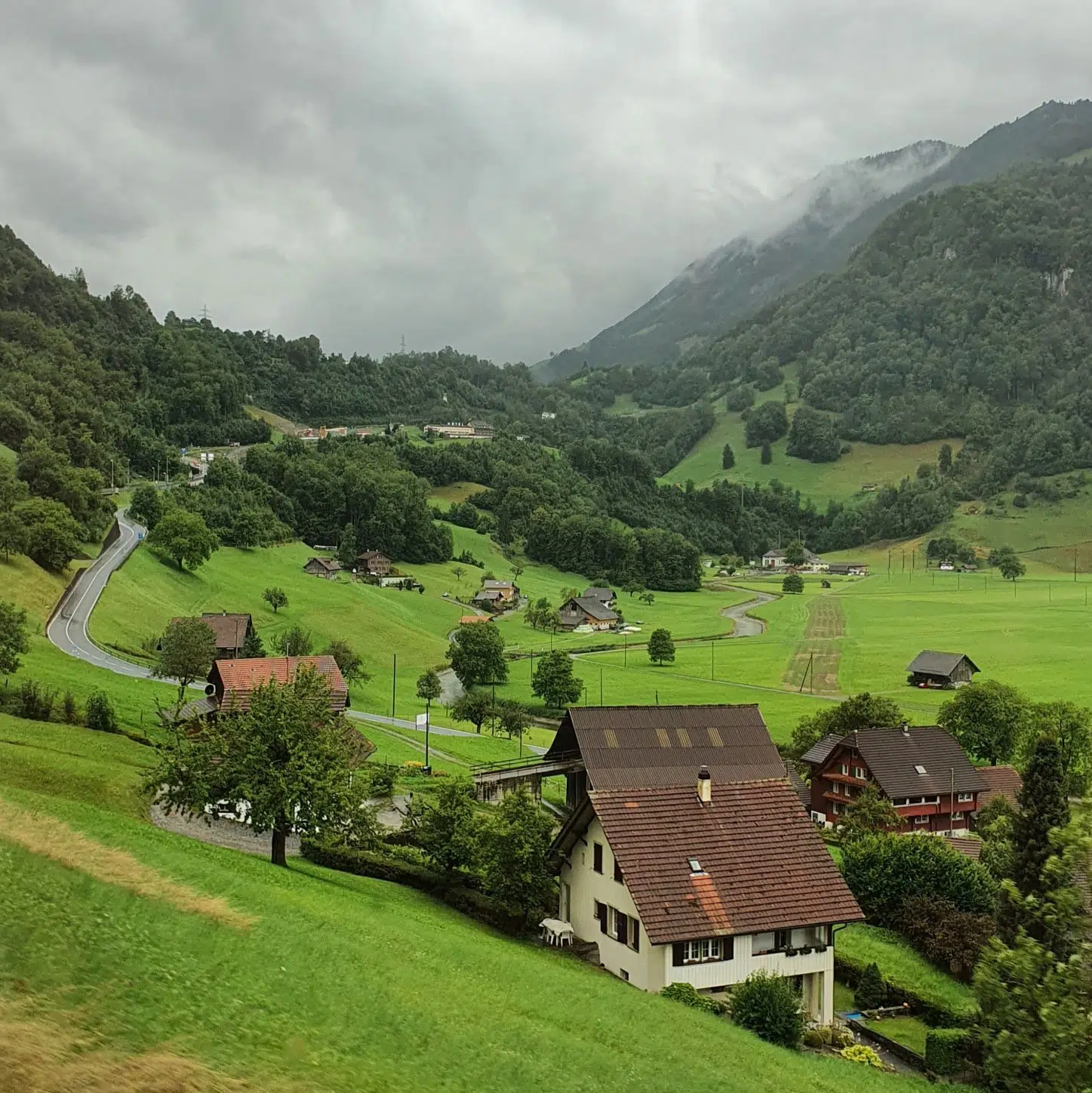 Po zjeździe kolejką z góry Pilatus wsiadłyśmy w pociąg jadący z Alpnachstadt w kierunku Brienz. Z biletami Swiss Travel Pass mogłyśmy swobodnie poruszać się pociągami na całej trasie tej podróży. Widoki z okna były bajeczne. To tylko jedno z wielu zdjęć, które zrobiłam z okna pociągu.