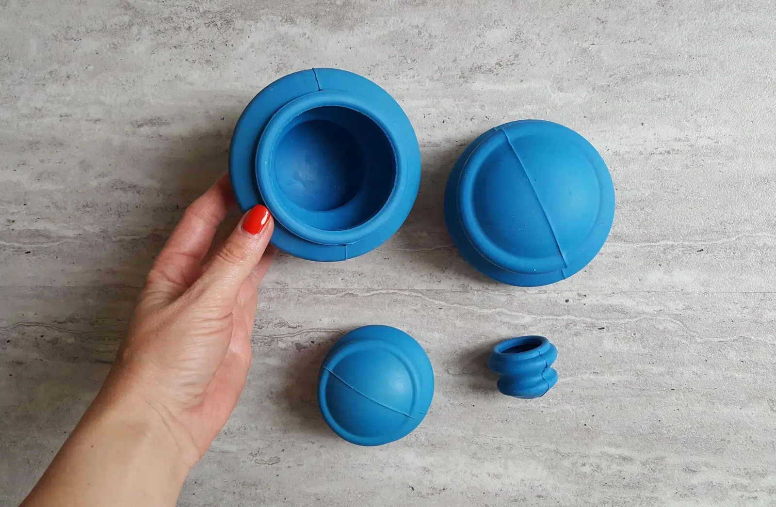 Do ud wykorzystuję drugą bańkę a do masażu brzucha oraz ramion trzecią licząc od największej. Bańka mini służy chyba do masażu twarzy ale tego jeszcze nie testowałam.