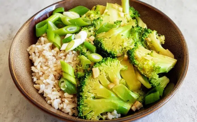 Najszybciej podacie je z makaronem ryżowym, który gotuje się zaledwie kilka minut. Na ryż niestety będzie trzeba dłużej poczekać, szczególnie na brązowy. Ja upodobałam sobie te brokuły stir fry (bardzo krótko smażone) i robię je często – na szybki obiad lub kolację.